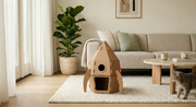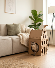 Omdat karton veilig voelt. Warm. Eigen. Daarom maken wij kattenhuizen die dat gevoel behouden maar er wél goed uitzien